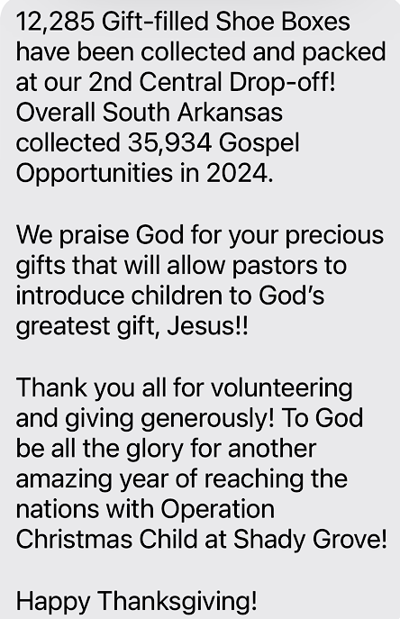 12,285 Gift-filled Shoe Boxes Packed Locally for Operation Christmas Child