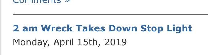 UPDATE – Recent 2 am Wreck that Took Down Stop Light was in STOLEN TRUCK