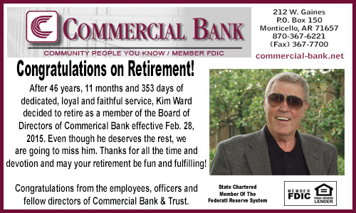 The Club was happy to welcome new player Paula Furlough to Monday night’s game. Club members Margaret Norton, Peggy Chapman, and Lowell Lynde participated in the Hot Springs Village sectional tournament during the weekend of March 27-29. Playing with Bodie Cobb of Keo and Marilyn Watt and Skip Henry both of Pine Bluff, Lynde and his teammates placed first in the A/X swiss team event.