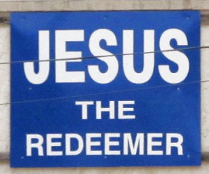 Clearview Glass, on East Gaines St., displays this sign, “Jesus the Redeemer”, publicly honoring our Lord and Savior.