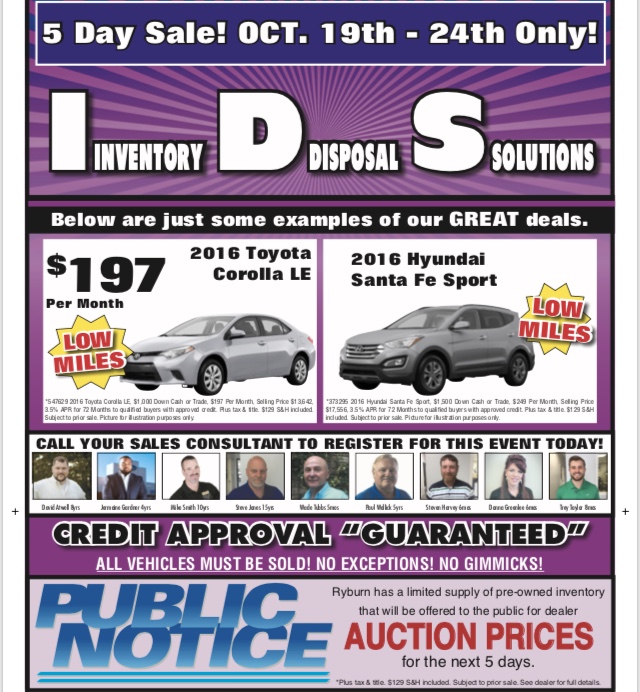 Posted in Business Center Ad | Comments Off on IDS Sale Ends Today at Ryburn Motor Co.