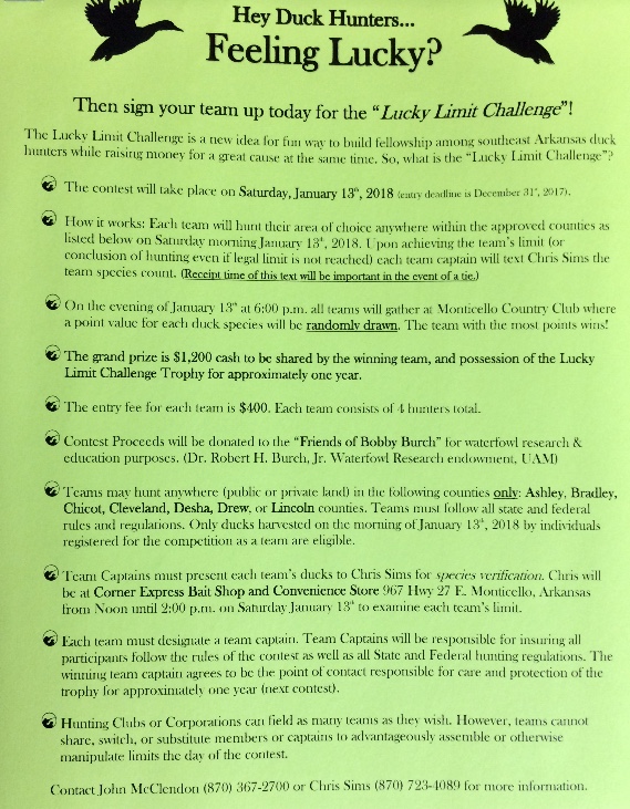 Posted in Announcements | Comments Off on Duck Hunters, Feeling Lucky?