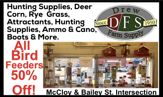Posted in Business Center Ad | Comments Off on All Bird Feeders, Half Off, at Drew Farm Supply