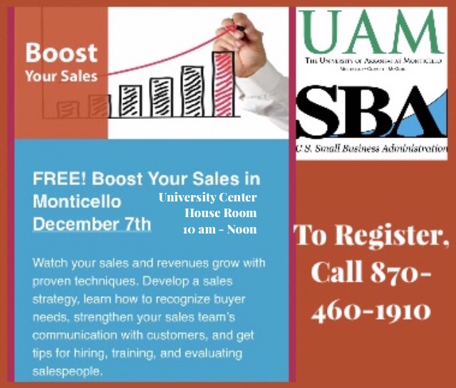 How to operate a home-based business and how to boost sales are the topics of a pair of free seminars to be hosted by the Arkansas Small Business and Technology Development Center (ASBTDC) at the University of Arkansas at Monticello.