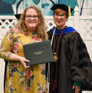 The University of Arkansas at Monticello presented a posthumous bachelor of arts degree in communications with a minor in political science to the late Ronnie Curry of Crossett during December commencement on Saturday. Nicole Currie (left), the late Mr. Curry’s daughter, accepted the degree from UAM Chancellor Karla Hughes.