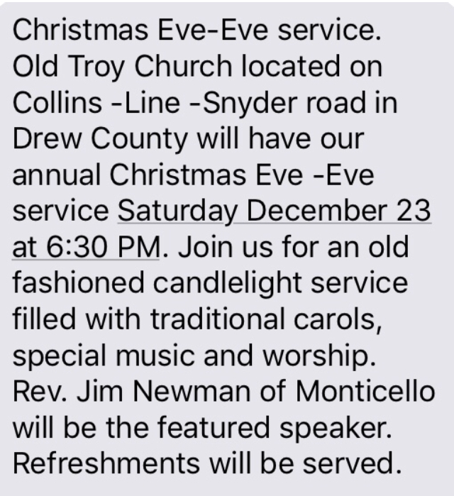 Posted in Christmas, Church | Comments Off on Old Troy Christmas Eve-Eve Service