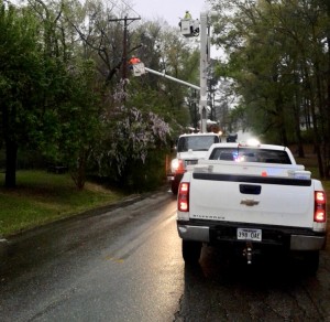 Entergy is shown removing a tree from a powerline, near the Hyatt Street and College Street intersection.