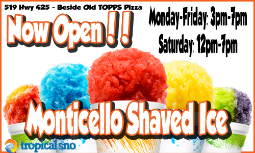 Posted in Business Center Ad | Comments Off on Monticello Shaved Ice Now Open