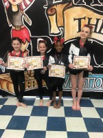 Level 1 Gymnasts- back row from left: Morgan Moore, Jaelynn Curry, Corbyn Curry, and kneeling, Azari Marshall and Kaylee Garrison