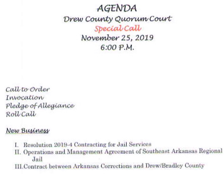During Monday night’s special called quorum court meeting, JP‘s asked several questions about the Regional Jail‘s policies, regulations and procedures, especially the contract with the state and counties.