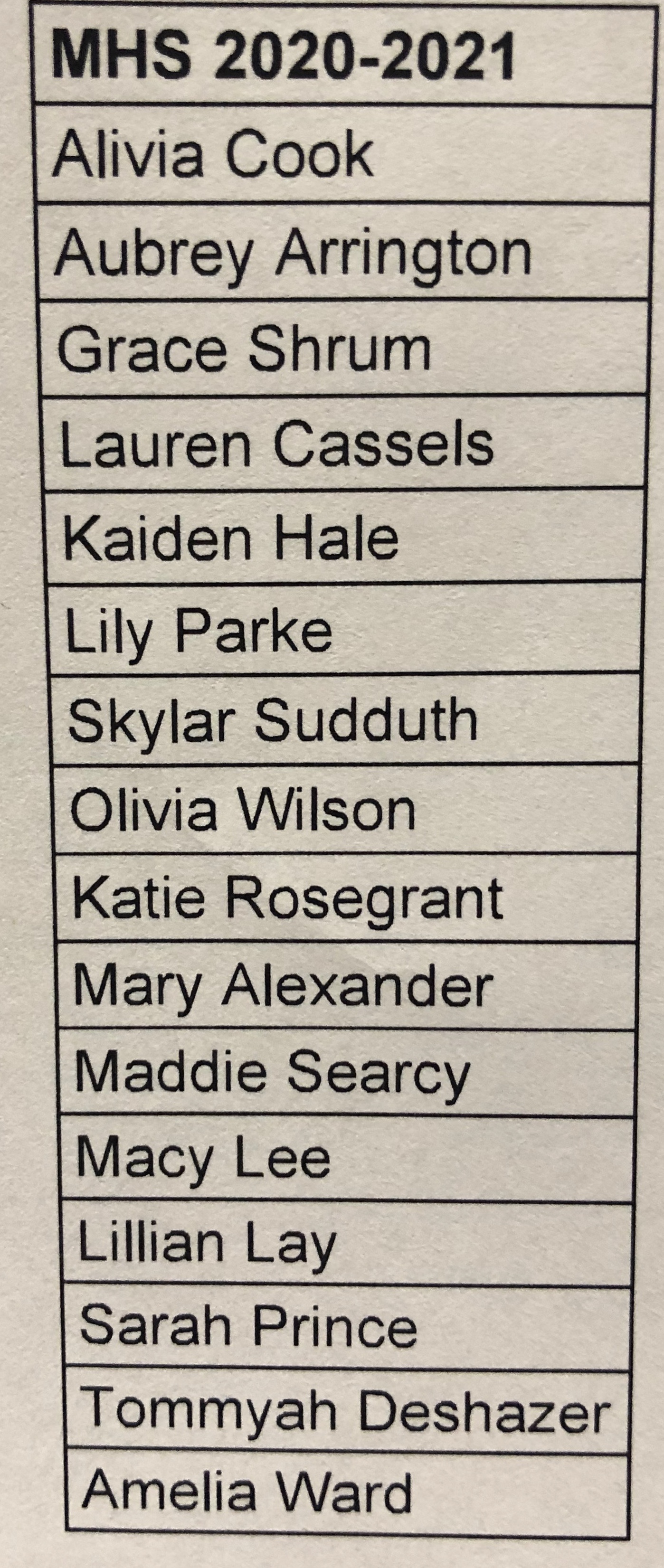 2020-2021 Monticello High School Cheer Squad arranged in Random Order. Congratulations girls!