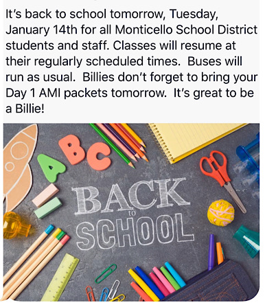 Posted in Site | Comments Off on Monticello Schools Resume, Tuesday