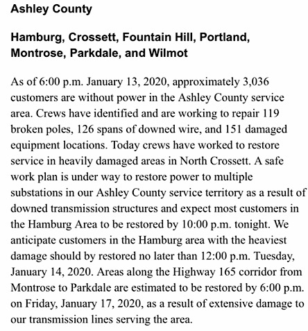 Posted in Ashley County | Comments Off on Chicot County Entergy Outage Update