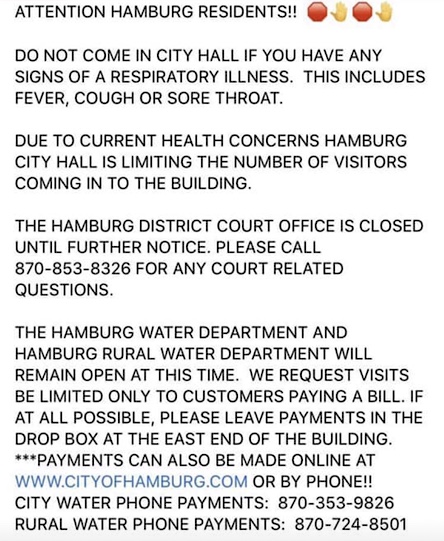 District Judge Bruce Anderson has announced that, in order to protect the public and court employees and in response to recommendations by Gov. Asa Hutchinson, the District Court Building will be closed to the public starting Tuesday, March 17, 2020, (more…)