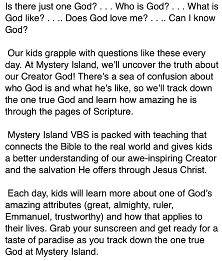 Posted in Church | Comments Off on MYSTERY ISLAND VBS, JULY 26-30 at Shady Grove Baptist Church, for Grades K-6th