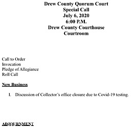 This photo from last months court session shows where defendants incarcerated in ADC are not transported to Drew County, but have their hearings take place electronically. The TV screen on the right of the photo can have the defendant and his attorney if needed, taking part, from wherever they may be housed.