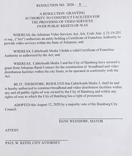 Posted in Ashley County | Comments Off on Internet Broadband Coming to Hamburg, Franchise Granted by City Council, $2,000,000 Grant, Should Start by End of 2020, Video