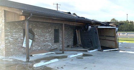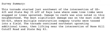 Rabb Construction, on the east side of Highway 425, received the most damage, with several work trucks being thrown into a nearby field, major building damage, and a trailer blown into the front of their business.