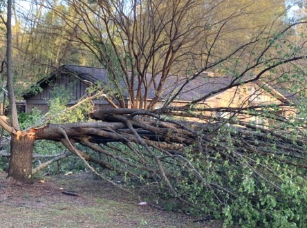 The Oakwood Road community sustained damage to several homes, and many twisted and uprooted trees