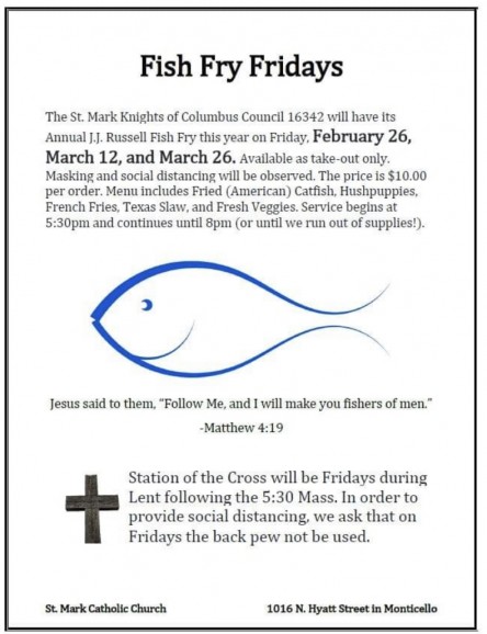 Posted in Announcements, Church | Comments Off on St. Mark’s Lenten Fish Fry Friday