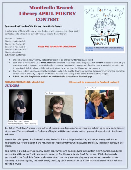 Posted in Announcements | Comments Off on Library Poetry Contest Announced