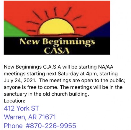 Posted in Announcements, Business Center Ad | Comments Off on New Beginnings Casa Offering AA/NA Meetings, Every Saturday, in Warren