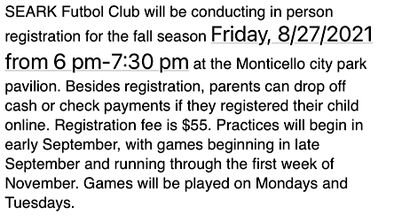 Posted in Sports | Comments Off on Soccer Registration, Tonight