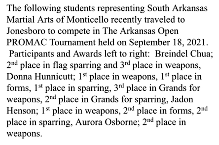 Posted in Sports | Comments Off on South Arkansas Martial Arts of Monticello Arkansas Open PROMAC Tournament
