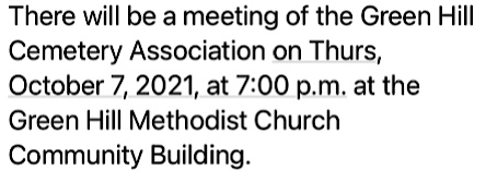 Posted in Announcements | Comments Off on Cemetery Meeting Announced