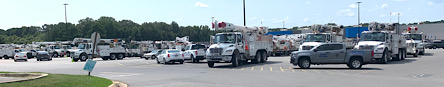 Approximately 40 hurricane relief electrical support trucks, along with their workers, stopped at a local convenience store, using the Walmart parking lot for a moment, on their way from Kansas City, Missouri to the New Orleans, Louisiana hurricane flood area.