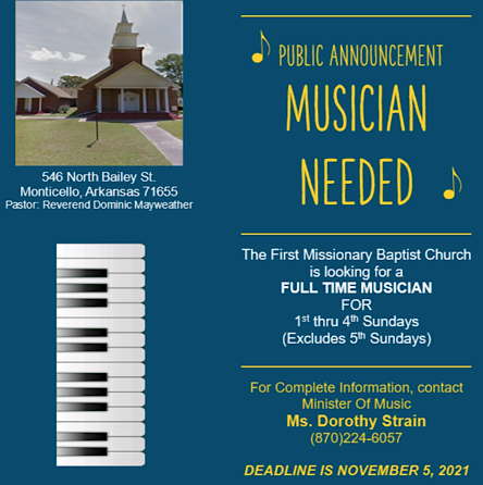 Posted in Church | Comments Off on Church Musician Needed