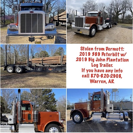 Posted in Police /Legal | Comments Off on Log Truck Stolen from Dermott, call PD at 870-538-5296 with Info