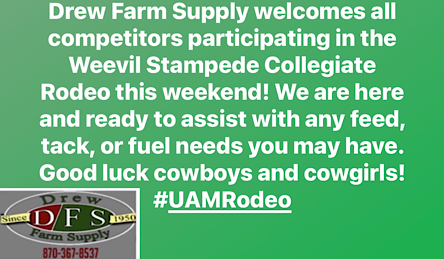 Posted in Business Center Ad | Comments Off on Drew Farm Supply Welcomes Weevil Stampede Rodeo