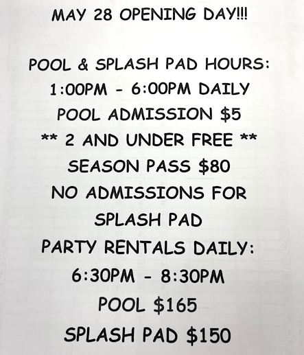 Posted in Sports | Comments Off on May 28th, Opening Day For Pool & Splash Pad