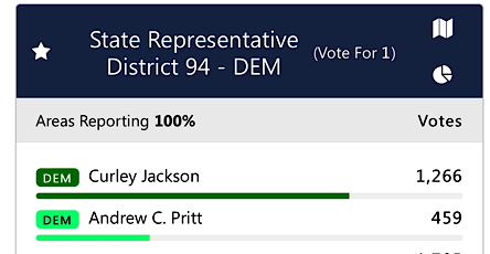 Posted in Elections | Comments Off on Curley Jackson Defeats Pritt, Faces GOP Wardlaw in November