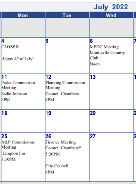 Posted in City | Comments Off on City July Meeting Schedule