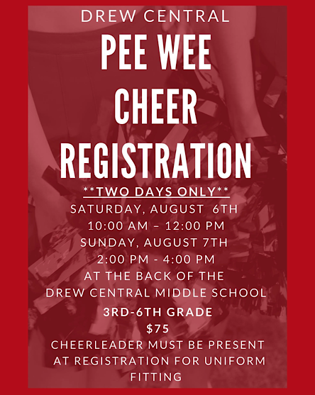 Posted in Sports | Comments Off on PEE WEE CHEER REGISTRATION, Saturday & Sunday