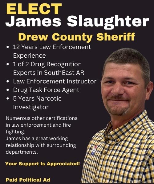 “I want to thank everyone for voting and especially to the supporters that voted for me, James Slaughter for Drew County Sheriff.