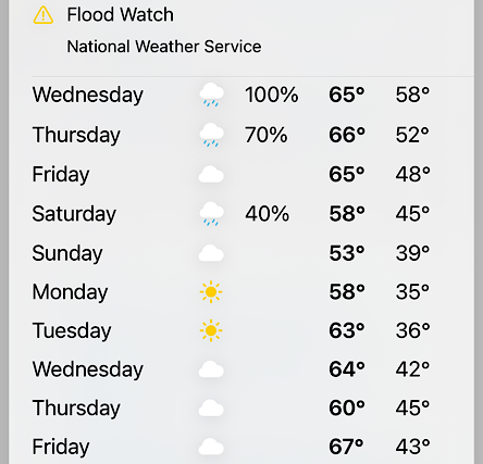 Posted in Weather | Comments Off on Weekly Forecast