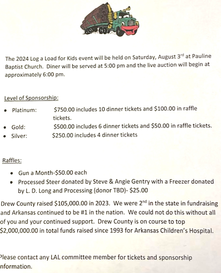 Posted in Announcements | Comments Off on DREW COUNTY LOG-A-LOAD FOR KIDS