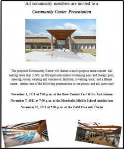 November 11th, 2011 byApproximately 50 local residents attended Thursday nights public meeting to see the presentation of the proposed Convention Center at UAM’s Fine Arts Center.