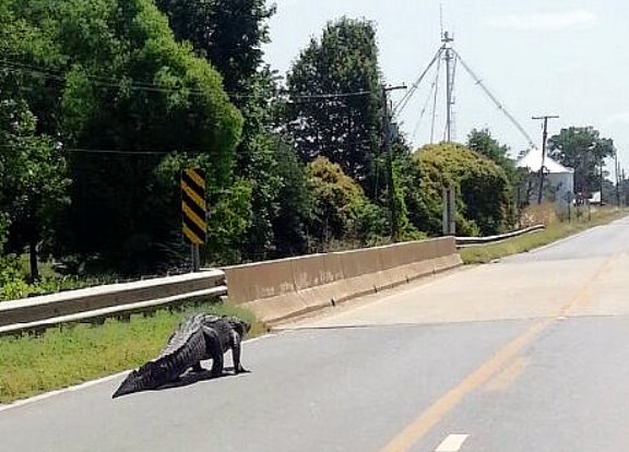 z gatorAround 11:30, Wednesday morning, an alligator, estimated to be approximately 8 foot long, was seen crossing the Coon Bayou Bridge, near Winchester.