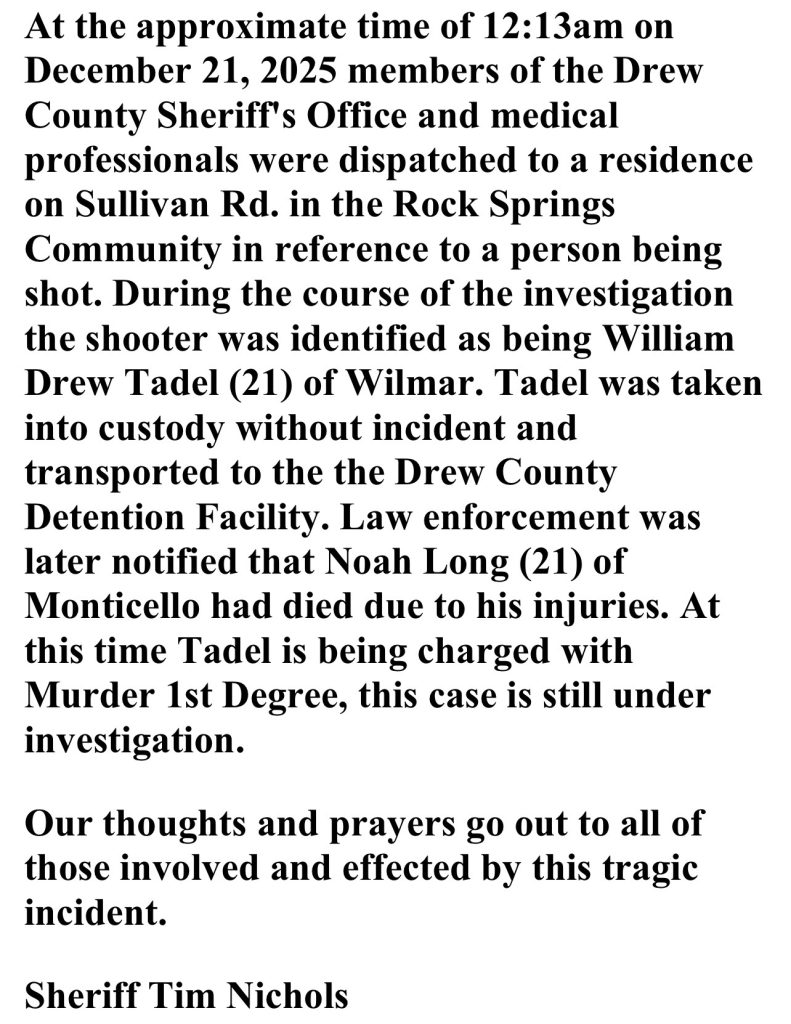 On October 7, 2025, a Drew County jury convicted Terry Laron Gragg Jr., of Monticello, of Delivery of more than 10 grams of Methamphetamine, following a jury trial.
