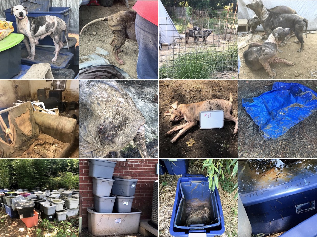 Their report includes an estimated 500 decomposing dog carcasses, contained in 20 gallon plastic totes around the property and behind the house.