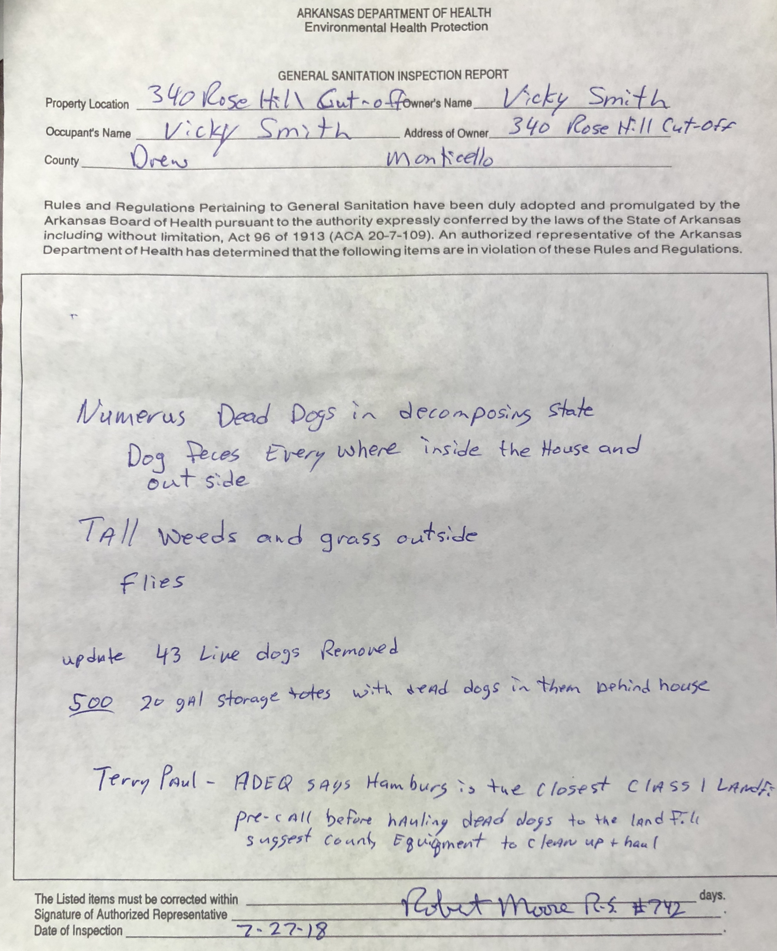 ADEQ & Health Dept. Investigating Death & Remains of 500 Dogs Found on Drew County Property- VERY GRAPHIC PHOTOS