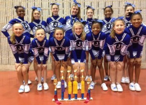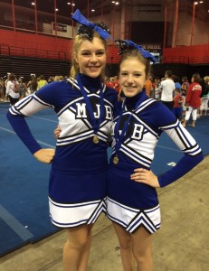 The Monticello Junior High cheerleaders recently attended the Universal Cheerleading Association’s summer cheer camp at ASU Jonesboro where they received multiple awards. They received a spirit stick each day of camp and also received all superior awards for every evaluation. They competed in the extreme routine competition where they were awarded first overall in the large group Junior High division. The girls also competed in the “Game Day” competition. They received 3rd place in the cheer division, 3rd place in the fight song division, 1st place in the side line division, and 2nd place in the overall “Game Day” competition. They were also recognized as a superior large group junior high squad. Katherine Dickson and Brooke Shrum advanced to the finals in the junior high jump off competition. Dickson and Shrum were also named All-American cheerleaders. Back row from left to right: Mariah Austin, Haley Hill, Hannah Ferguson, Brooke Shrum (captain), Katherine Dickson (co-captain), Millennium Butler, Gracie Johnson Front row from left to right: Jewel Chapman, Alex Pennington, Kensley Young, Mallory Bennett, J’Naya Brown, Dottie Grace Brown, Anna Collins 2nd pic: Brooke Shrum (captain) and Katherine Dickson (co-captain)