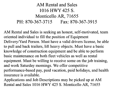 AM Rental & Sales Seeking Full Time Delivery & Yard Man