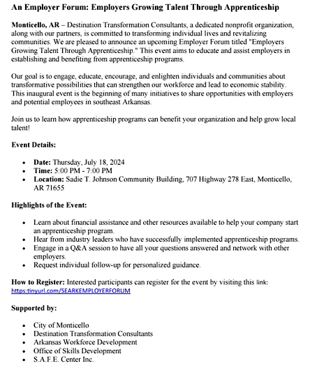 An Employer Forum: Employers Growing Talent Through Apprenticeship, July 18, Thursday