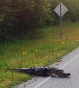 Wednesday’s alligator was crossing HWY 138, east of its intersection with HWY 293.