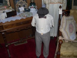 This is a Little Boys “Sunday best” early 1920’s clothing along with other clothing from different periods on display,